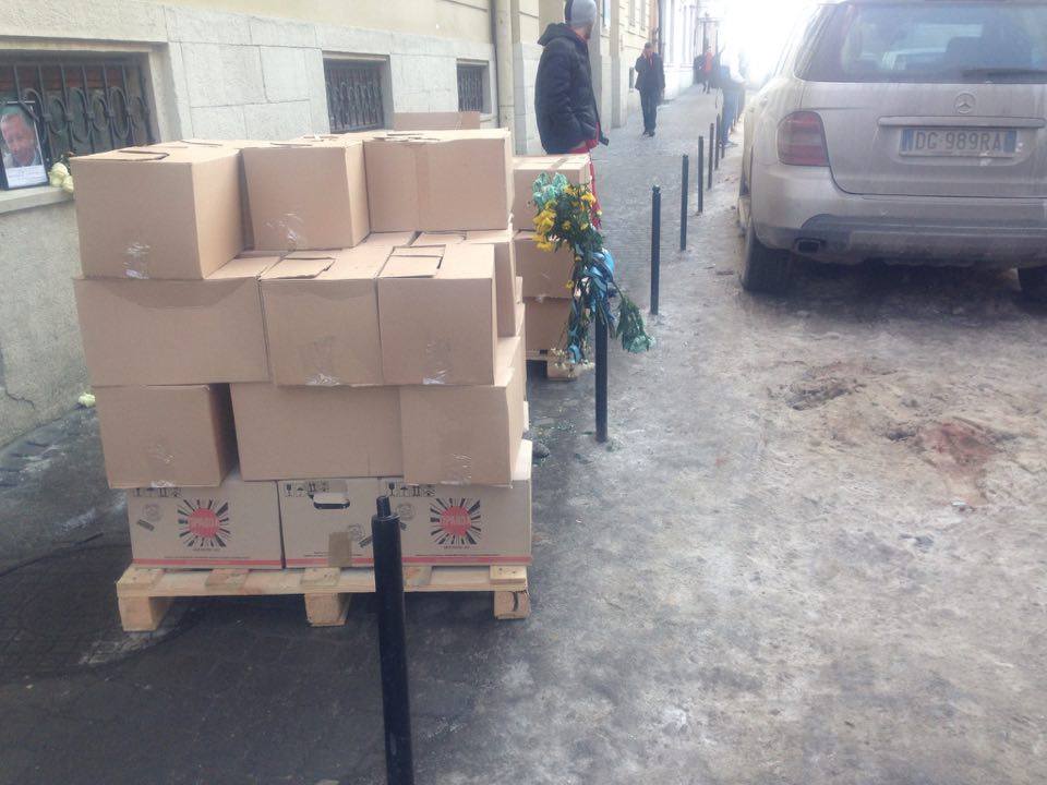 На місці, де 24 січня у центрі Львова загинув паркувальник, з’явилися квіти і портрет загиблого.