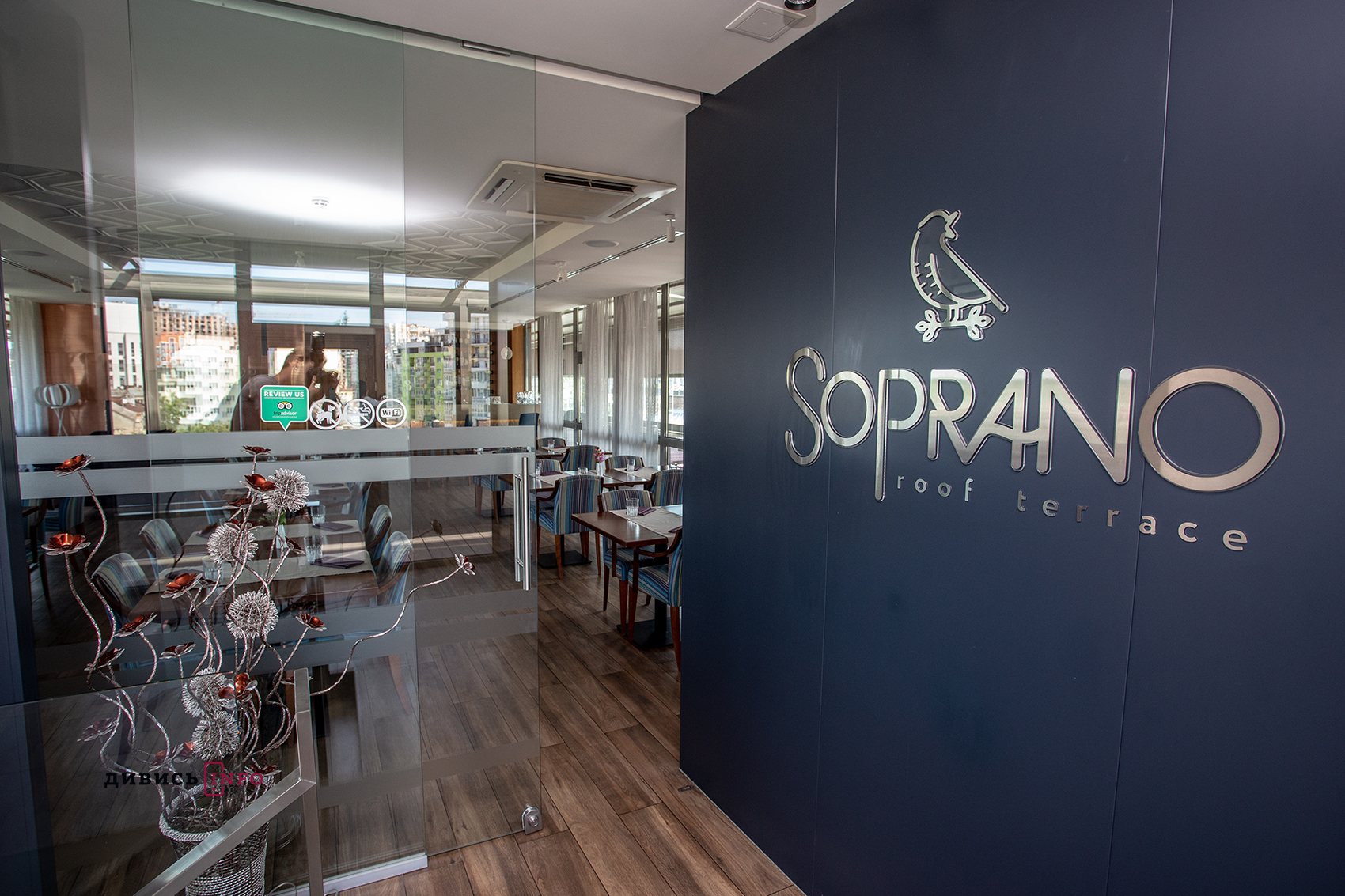 До послуг гостей готелю Taurus City на 7 поверсі розташований ресторан «Soprano. Roof terrace», де можна посмакувати стравами, приготованими на деревному вугіллі у печі хоспер.