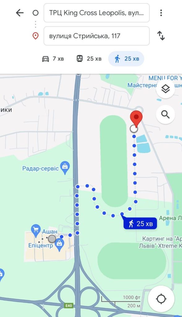 А до найближчого будинку з підвалом, як показує гугл-карта, — 25 хвилин пішки, 25 хвилин громадським транспортом та 7 хвилин автомобілем. Зрозуміло, що цифри приблизні, але у випадку небезпеки це має значення.