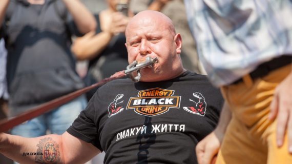 Головні 27 липня 2016, 16:34 Стронгмен зубами протягнув чотири вагони з дітьми в центрі Львова (фото)