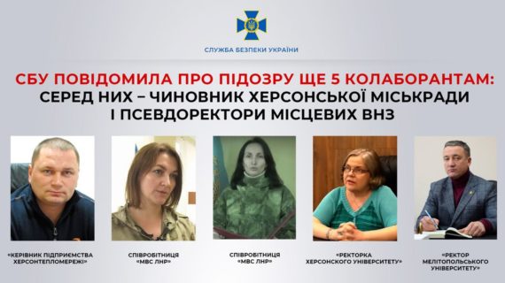 12 квітня 2023, 20:30 5 колаборантам повідомили про підозру: серед зрадників чиновник Херсонської міськради і псевдоректори місцевих ВНЗ