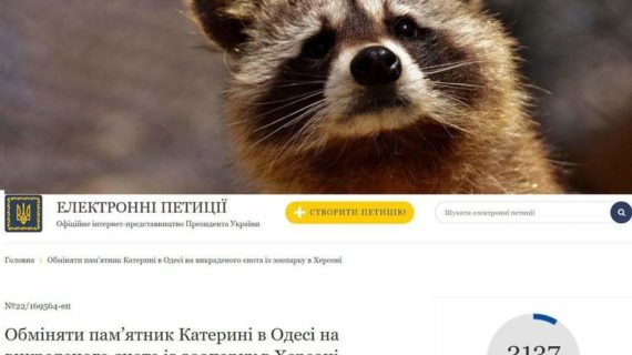 17 листопада 2022, 19:25 Українці хочуть обміняти вкраденого з Херсона єнота на одеський пам'ятник Катерині II