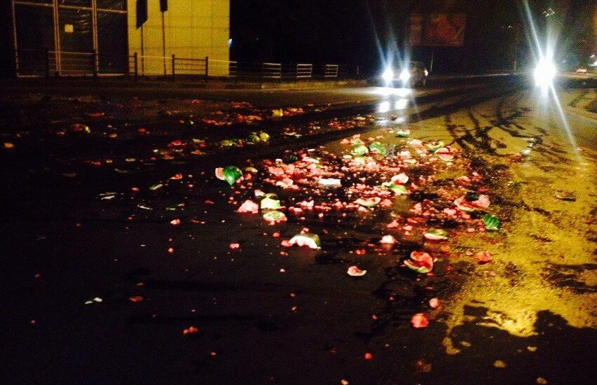 17 вересня 2016, 09:34 Кавуновий шлях. У Львові невідомі розламали сітку з кавунами і встелили ними дорогу (Фото)