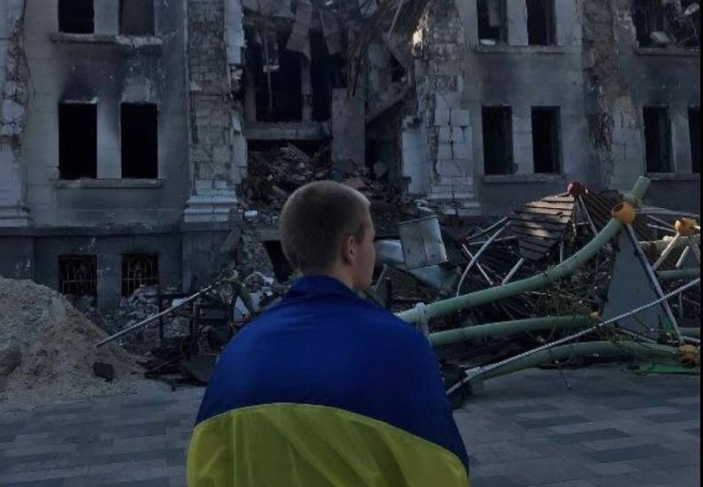 18 липня 2022, 11:59 Україна незламна: в окупованому Маріуполі юнак вийшов до зруйнованого Драмтеатру із синьо-жовтим прапором