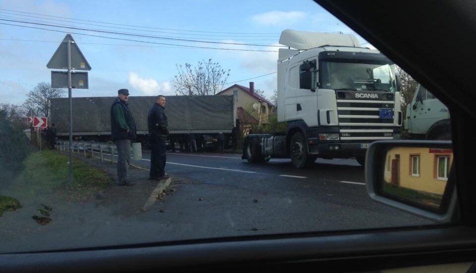 На Львівщині фура, яка потрапила в ДТП, повністю перегородила дорогу (Фото)