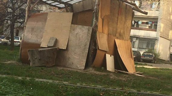 21 листопада 2022, 10:54 У Львові на вулиці Мазепи збудували загадкову альтанку з сміття: що це - ніхто не знає